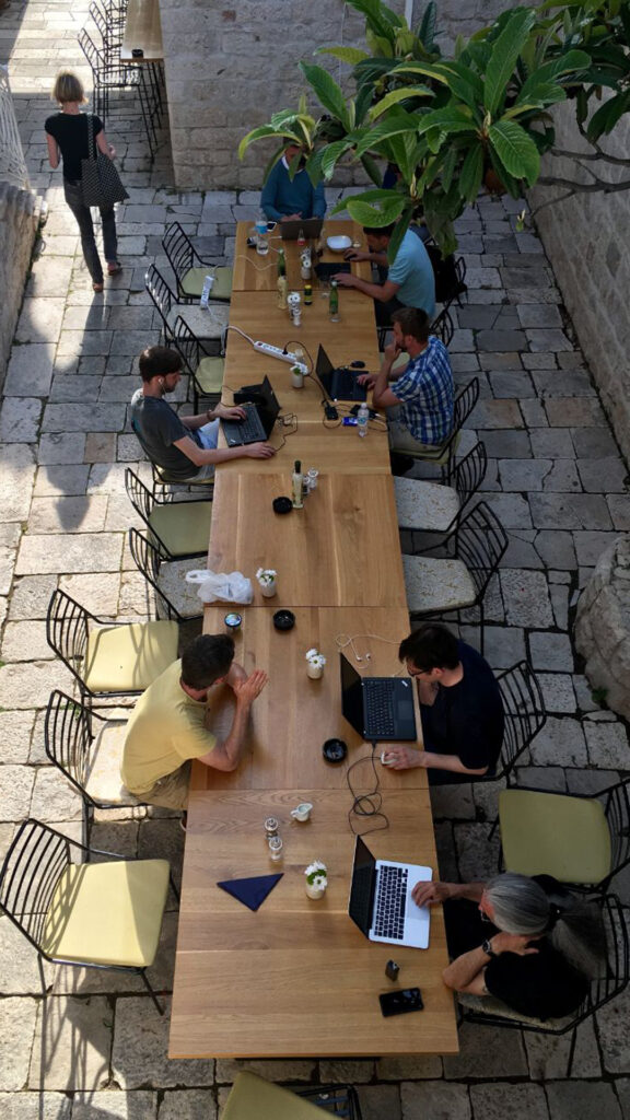 Schon bald platzte auch dieses Büro aus allen Nähten und es hieß: Hallo, Behrenstraße 18! Das Team wuchs weiter an, denn es gab ordentlich zu tun: Ein zentraler Meilenstein war 2020 die Einführung von VICOS, unserem ersten SaaS-Offering. Im selben Jahr schloss sich ein Kreis, als wir INUBIT von Bosch kauften und damit wertvolles Know-how wieder vollständig ins Unternehmen holten. Dass die gute Partnerschaft zu Bosch bis heute erhalten bleibt, zeigen regelmäßige Workshops in Berlin und mit unserem Offshore-Entwicklungsteam in Bangalore. Events wie die VIRTIMO VISIONS und Weihnachtsfeier in Zeiten von Corona? Als Digital-Profis haben wir selbstverständlich auch das gemeistert. 😎